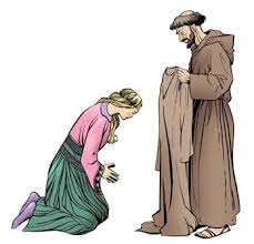 Au soir du dimanche des Rameaux, 18-19 mars 1212, elle s'enfuit de la maison paternelle, court vers la Portioncule, humble chapelle perdue dans les bois d'Assise. François l'attend sur le seuil; il va accueillir le plus beau trésor qu'il lui sera donné d'offrir à Dieu.